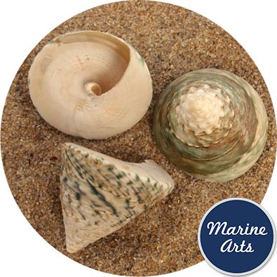Spiral top sea shells displaying a striated sea green colour. Expertly crafted by nature to inspire creativity both for crafts and in professional design.