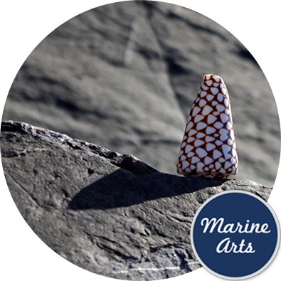 The Cone (Conidae) family of shells comprises at least 300 species, and are successful predators feeding on small fish and other molluscs. The creature living within the cone shell is able to immobilise its prey with a harpoon-like tooth which can be extended beyond the length of the shell. The venom can be very painful and has been known to be fatal to humans on rare occasions.