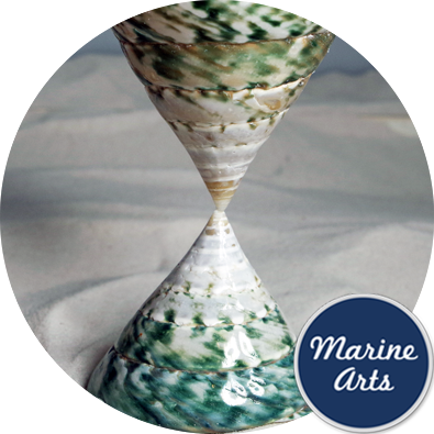 A beautiful green and white coloured smooth conical shell, skilfully polished by hand to a glossy shine. Ideal as a stand-alone feature for bathrooms and seaside retreats.