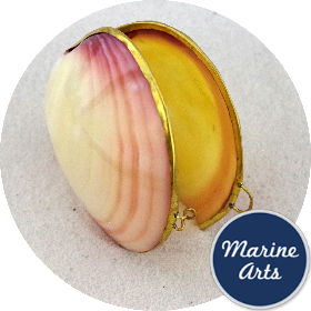 Tigrina Clam purse, beautifully crafted from two matched sea shell halves. Ideal for both fun giving at beach parties and as presentation purses for special occasions.