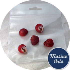 Mini strawberry red top shells for crafts, especially suited to incidental and detailed decoration of invitation cards, place settings and making bespoke jewellery boxes.